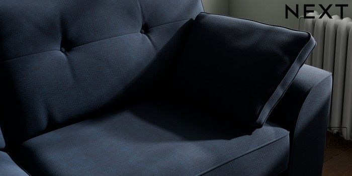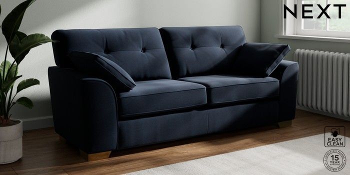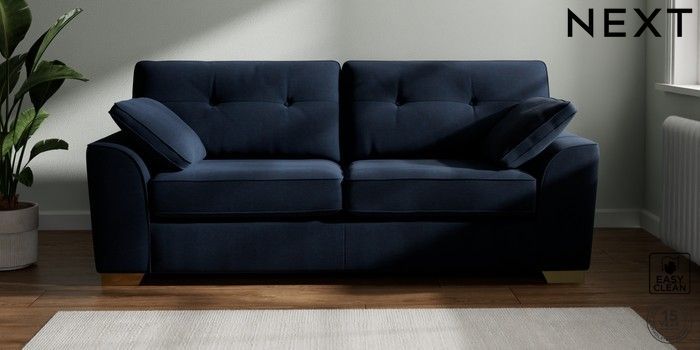 7.2.10 Stamford Buttoned Back 3 Seater Sofa Fine Chenille Easy Clean Dark Navy Blue Large Square Angle - Brushed Brass | Made Click here to use our website with more accessibility support, for example screen readers