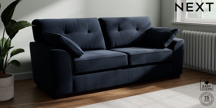 7.2.10 Stamford Buttoned Back 3 Seater Sofa Fine Chenille Easy Clean Dark Navy Blue Large Square Angle - Dark | Made Click here to use our website with more accessibility support, for example screen readers