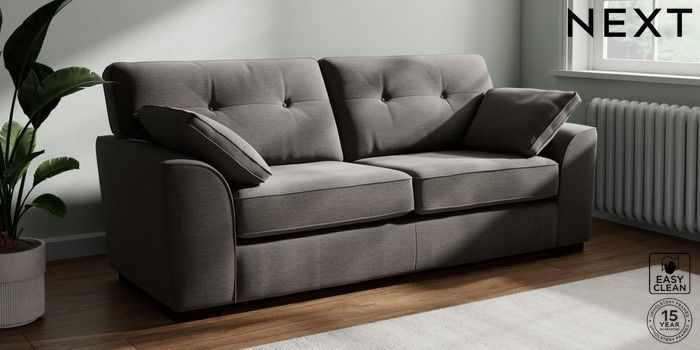 7.2.10 Stamford Buttoned Back 3 Seater Sofa Fine Chenille Easy Clean Dark Smoke Grey Large Square Angle - Dark | Made Click here to use our website with more accessibility support, for example screen readers