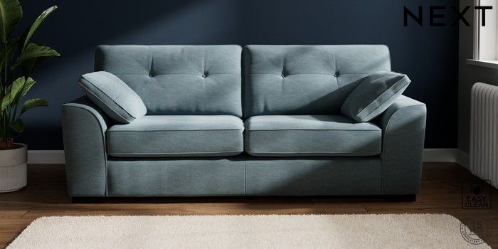 7.2.10 Stamford Buttoned Back 3 Seater Sofa Fine Chenille Easy Clean Mid Blue Large Square Angle - Dark | Made Click here to use our website with more accessibility support, for example screen readers