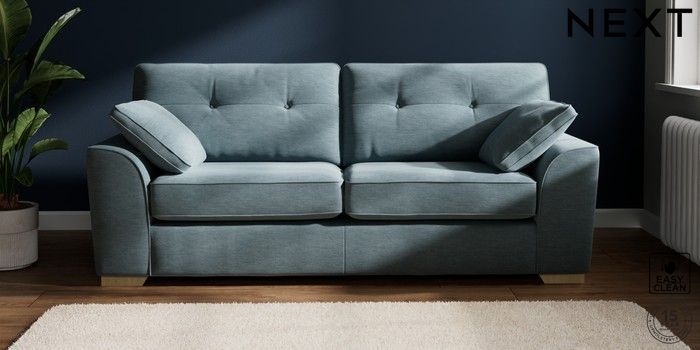 7.2.10 Stamford Buttoned Back 3 Seater Sofa Fine Chenille Easy Clean Mid Blue Large Square Angle - Light | Made Click here to use our website with more accessibility support, for example screen readers