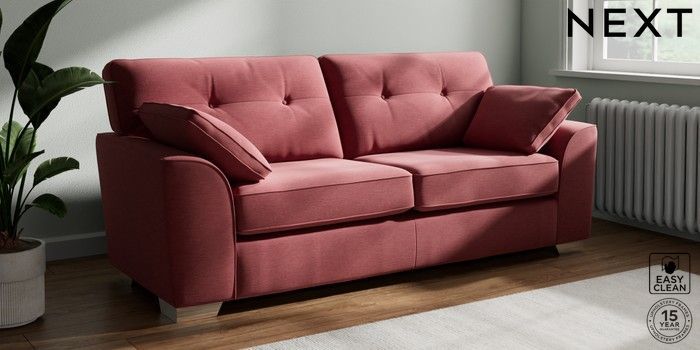 7.2.10 Stamford Buttoned Back 3 Seater Sofa Fine Chenille Easy Clean Mid Pink Large Square Angle - Chrome Metal | Made Click here to use our website with more accessibility support, for example screen readers