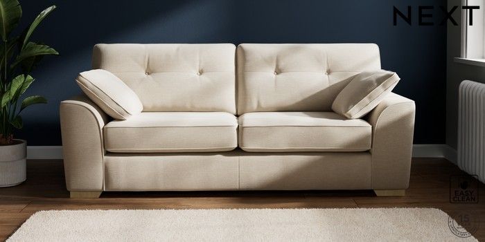 7.2.10 Stamford Buttoned Back 3 Seater Sofa Fine Chenille Easy Clean Oyster Large Square Angle - Light | Made Click here to use our website with more accessibility support, for example screen readers