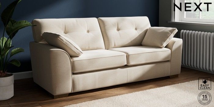 7.2.10 Stamford Buttoned Back 3 Seater Sofa Fine Chenille Easy Clean Oyster Large Square Angle - Mid | Made Click here to use our website with more accessibility support, for example screen readers