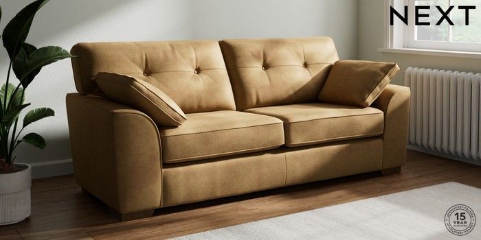 7.2.10 Stamford Buttoned Back 3 Seater Sofa Luxe Chenille Honey Yellow Large Square Angle - Mid | Made Click here to use our website with more accessibility support, for example screen readers