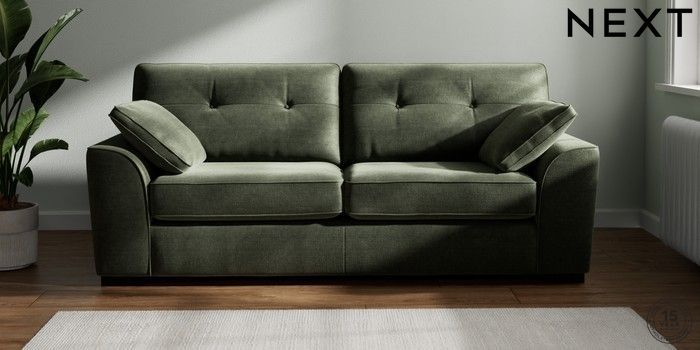 7.2.10 Stamford Buttoned Back 3 Seater Sofa Luxe Chenille Mid Green Large Square Angle - Dark | Made Click here to use our website with more accessibility support, for example screen readers