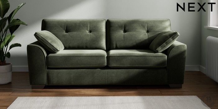 7.2.10 Stamford Buttoned Back 3 Seater Sofa Luxe Chenille Mid Green Large Square Angle - Gunmetal | Made Click here to use our website with more accessibility support, for example screen readers