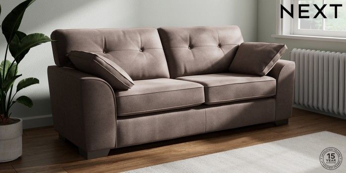 7.2.10 Stamford Buttoned Back 3 Seater Sofa Luxe Chenille Mink Brown Large Square Angle - Gunmetal | Made Click here to use our website with more accessibility support, for example screen readers