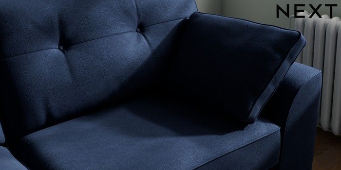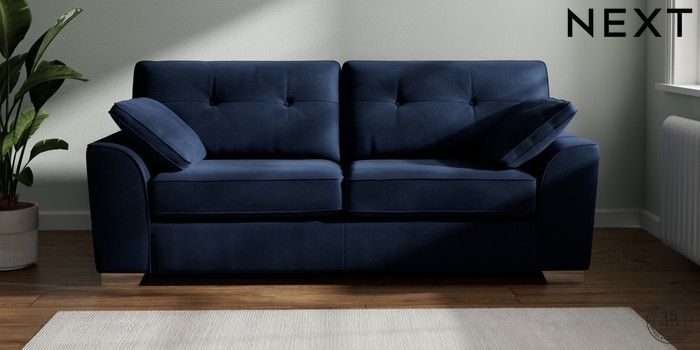 7.2.10 Stamford Buttoned Back 3 Seater Sofa Luxe Chenille Navy Blue Large Square Angle - Chrome Metal | Made Click here to use our website with more accessibility support, for example screen readers