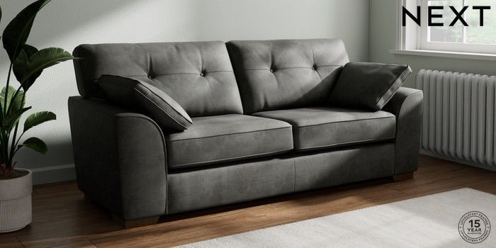 7.2.10 Stamford Buttoned Back 3 Seater Sofa Monza Faux Leather Easy Clean Dark Grey Large Square Angle - Mid | Made Click here to use our website with more accessibility support, for example screen readers