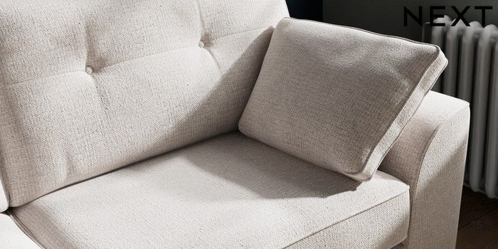 7.2.10 Stamford Buttoned Back 3 Seater Sofa Multi Weave Oyster Large Square Angle - Brushed Brass | Made Click here to use our website with more accessibility support, for example screen readers