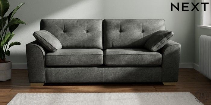 7.2.10 Stamford Buttoned Back 3 Seater Sofa Plush Chenille Dark Grey Large Square Angle - Light | Made Click here to use our website with more accessibility support, for example screen readers
