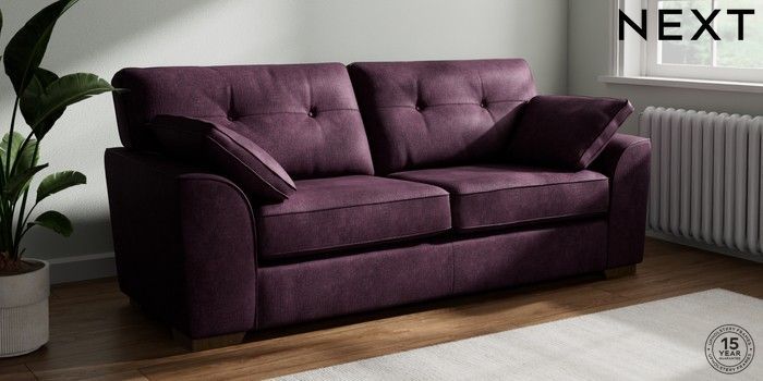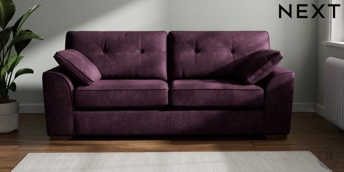 7.2.10 Stamford Buttoned Back 3 Seater Sofa Plush Chenille Dark Plum Purple Large Square Angle - Mid | Made Click here to use our website with more accessibility support, for example screen readers