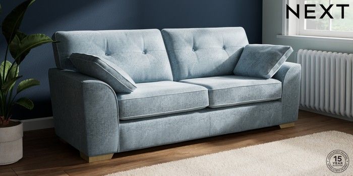 7.2.10 Stamford Buttoned Back 3 Seater Sofa Plush Chenille Light Blue Large Square Angle - Light | Made Click here to use our website with more accessibility support, for example screen readers