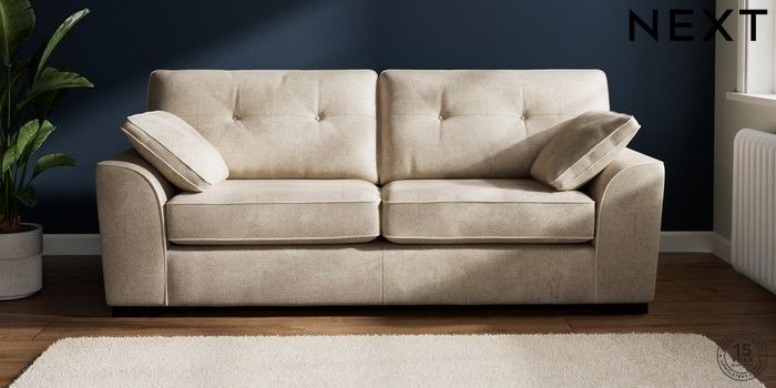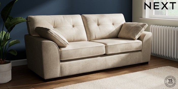7.2.10 Stamford Buttoned Back 3 Seater Sofa Plush Chenille Light Natural Large Square Angle - Dark | Made Click here to use our website with more accessibility support, for example screen readers