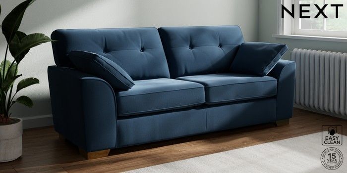 7.2.10 Stamford Buttoned Back 3 Seater Sofa Plush Velvet Easy Clean Airforce Blue Large Square Angle - Brushed Brass | Made Click here to use our website with more accessibility support, for example screen readers