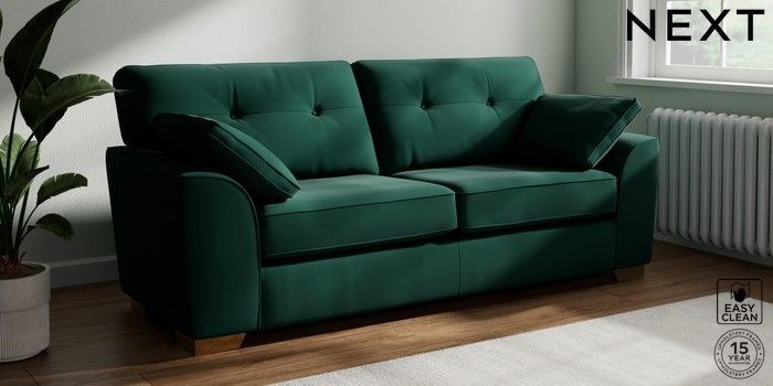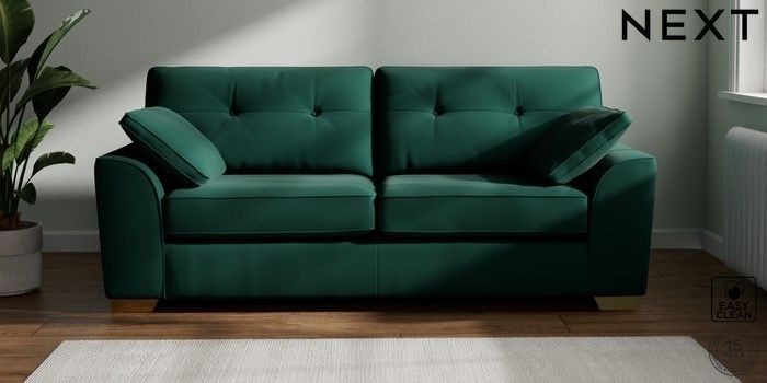 7.2.10 Stamford Buttoned Back 3 Seater Sofa Plush Velvet Easy Clean Bottle Green Large Square Angle - Brushed Brass | Made Click here to use our website with more accessibility support, for example screen readers