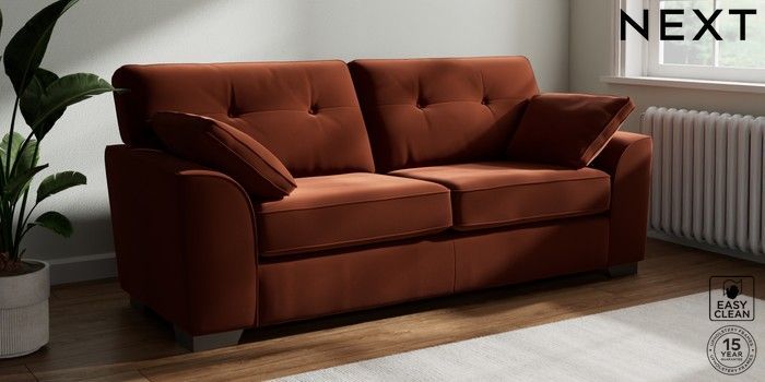 7.2.10 Stamford Buttoned Back 3 Seater Sofa Plush Velvet Easy Clean Ginger Orange Large Square Angle - Gunmetal | Made Click here to use our website with more accessibility support, for example screen readers