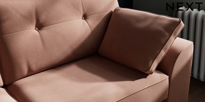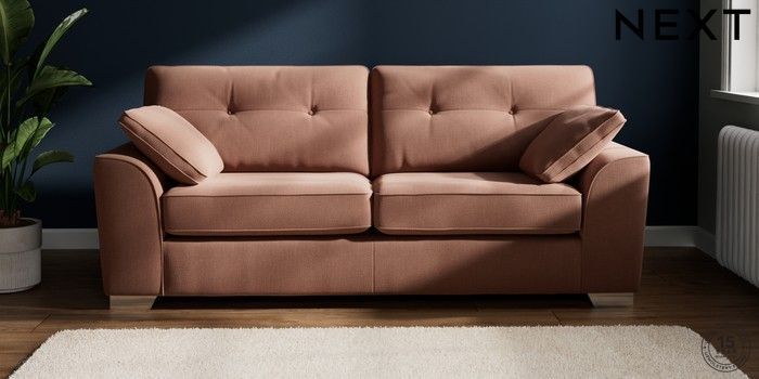 7.2.10 Stamford Buttoned Back 3 Seater Sofa Relaxed Linen Look Light Rust Brown Large Square Angle - Chrome Metal | Made Click here to use our website with more accessibility support, for example screen readers