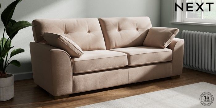 7.2.10 Stamford Buttoned Back 3 Seater Sofa Relaxed Linen Look Mid Natural Large Square Angle - Mid | Made Click here to use our website with more accessibility support, for example screen readers