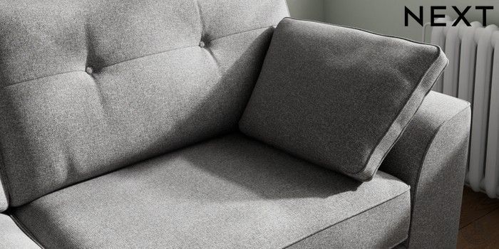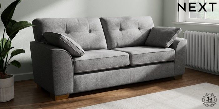 7.2.10 Stamford Buttoned Back 3 Seater Sofa Studio Chenille Mid Grey Large Square Angle - Brushed Brass | Made Click here to use our website with more accessibility support, for example screen readers