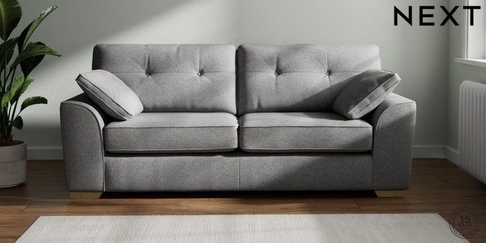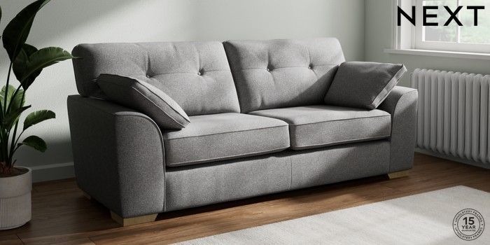 7.2.10 Stamford Buttoned Back 3 Seater Sofa Studio Chenille Mid Grey Large Square Angle - Light | Made Click here to use our website with more accessibility support, for example screen readers