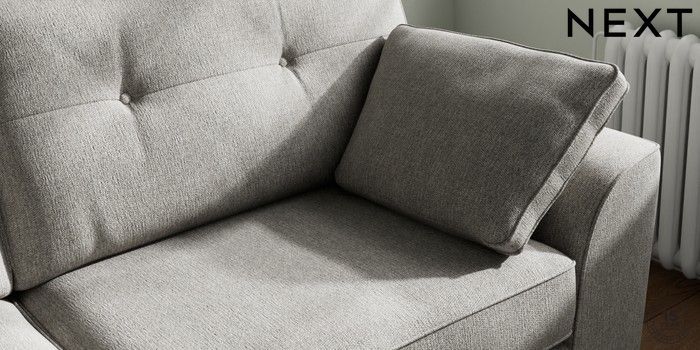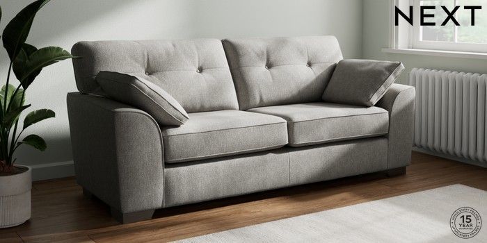 7.2.10 Stamford Buttoned Back 3 Seater Sofa Tweedy Chenille Mid Grey Large Square Angle - Gunmetal | Made Click here to use our website with more accessibility support, for example screen readers