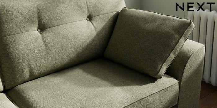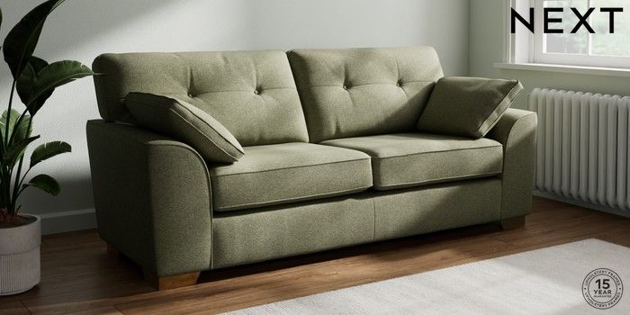 7.2.10 Stamford Buttoned Back 3 Seater Sofa Tweedy Chenille Mid Moss Green Large Square Angle - Brushed Brass | Made Click here to use our website with more accessibility support, for example screen readers