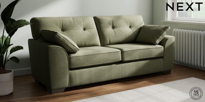 7.2.10 Stamford Buttoned Back 3 Seater Sofa Tweedy Chenille Mid Moss Green Large Square Angle - Gunmetal | Made Click here to use our website with more accessibility support, for example screen readers