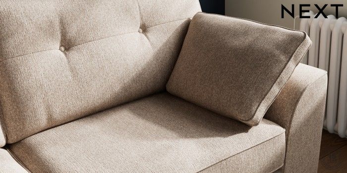 7.2.10 Stamford Buttoned Back 3 Seater Sofa Tweedy Chenille Mid Natural Large Square Angle - Gunmetal | Made Click here to use our website with more accessibility support, for example screen readers