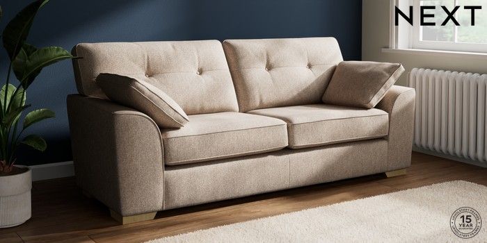 7.2.10 Stamford Buttoned Back 3 Seater Sofa Tweedy Chenille Mid Natural Large Square Angle - Light | Made Click here to use our website with more accessibility support, for example screen readers