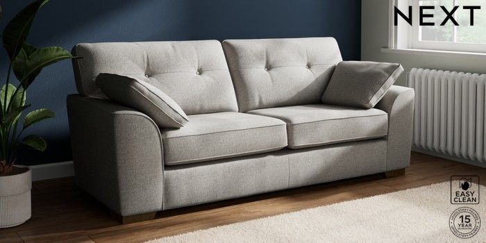 7.2.10 Stamford Buttoned Back 3 Seater Sofa Woven Chenille Easy Clean Light Grey Large Square Angle - Mid | Made Click here to use our website with more accessibility support, for example screen readers