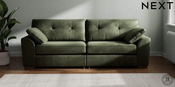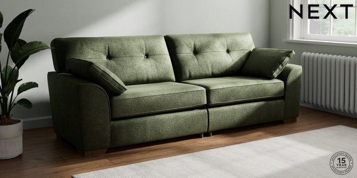 7.2.10 Stamford Buttoned Back 4 Seater Sofa Boucle Chenille Dark Moss Green Large Square Angle - Mid | Made Click here to use our website with more accessibility support, for example screen readers