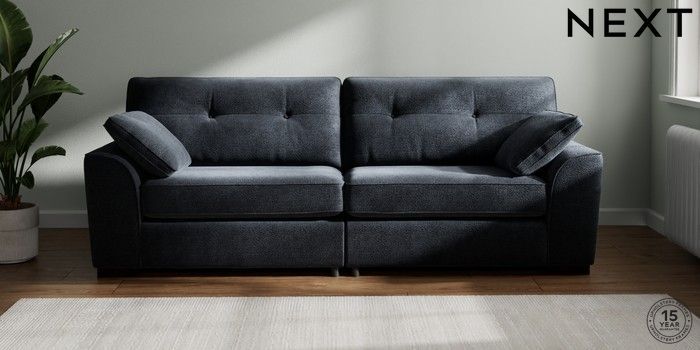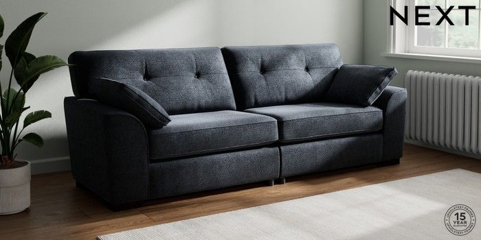 7.2.10 Stamford Buttoned Back 4 Seater Sofa Boucle Chenille Dark Slate Blue Large Square Angle - Dark | Made Click here to use our website with more accessibility support, for example screen readers
