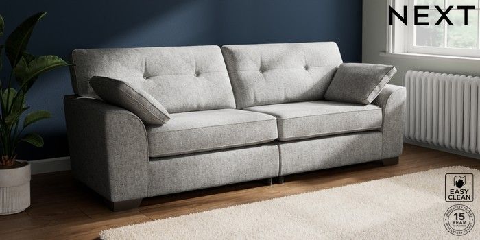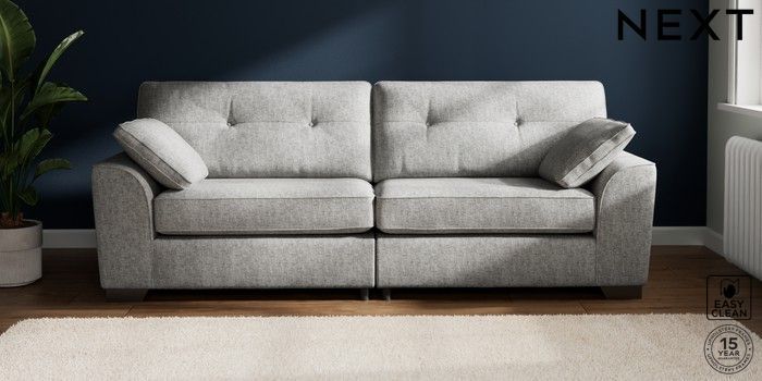 7.2.10 Stamford Buttoned Back 4 Seater Sofa Chunky Boucle Easy Clean Light Grey Large Square Angle - Gunmetal | Made Click here to use our website with more accessibility support, for example screen readers