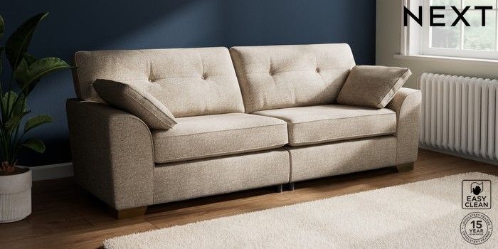7.2.10 Stamford Buttoned Back 4 Seater Sofa Chunky Boucle Easy Clean Mid Natural Large Square Angle - Brushed Brass | Made Click here to use our website with more accessibility support, for example screen readers