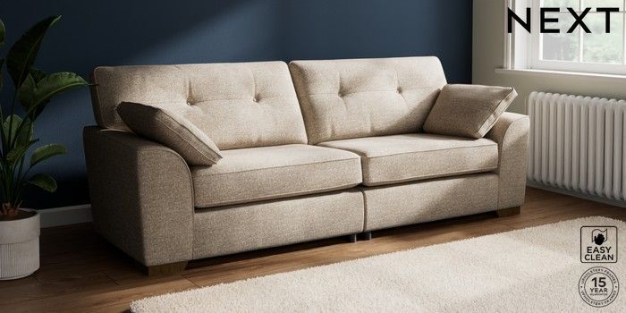 7.2.10 Stamford Buttoned Back 4 Seater Sofa Chunky Boucle Easy Clean Mid Natural Large Square Angle - Mid | Made Click here to use our website with more accessibility support, for example screen readers