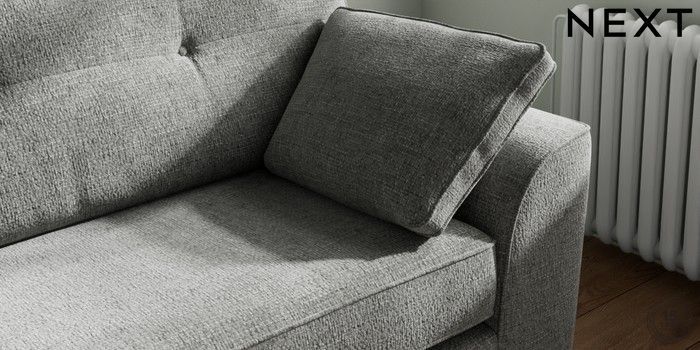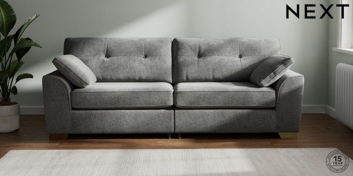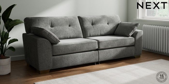 7.2.10 Stamford Buttoned Back 4 Seater Sofa Chunky Chenille Dark Grey Large Square Angle - Brushed Brass | Made Click here to use our website with more accessibility support, for example screen readers