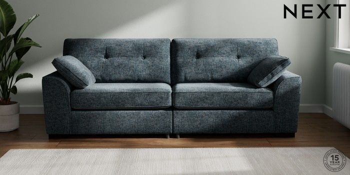 7.2.10 Stamford Buttoned Back 4 Seater Sofa Chunky Chenille Dark Navy Blue Large Square Angle - Dark | Made Click here to use our website with more accessibility support, for example screen readers
