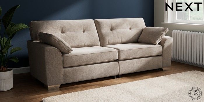 7.2.10 Stamford Buttoned Back 4 Seater Sofa Chunky Chenille Light Dove Large Square Angle - Chrome Metal | Made Click here to use our website with more accessibility support, for example screen readers