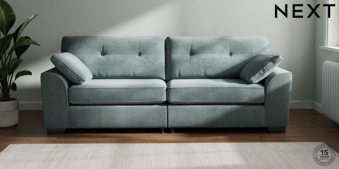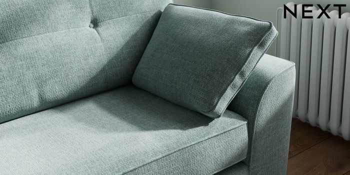 7.2.10 Stamford Buttoned Back 4 Seater Sofa Chunky Chenille Light Teal Green Large Square Angle - Gunmetal | Made Click here to use our website with more accessibility support, for example screen readers
