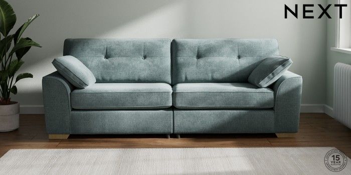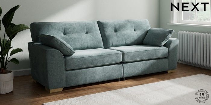 7.2.10 Stamford Buttoned Back 4 Seater Sofa Chunky Chenille Light Teal Green Large Square Angle - Light | Made Click here to use our website with more accessibility support, for example screen readers