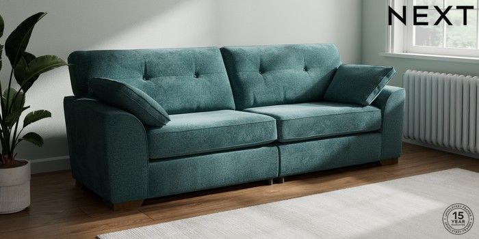 7.2.10 Stamford Buttoned Back 4 Seater Sofa Chunky Chenille Mid Teal Green Large Square Angle - Mid | Made Click here to use our website with more accessibility support, for example screen readers