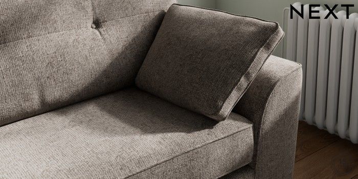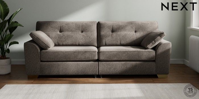 7.2.10 Stamford Buttoned Back 4 Seater Sofa Chunky Chenille Mink Brown Large Square Angle - Brushed Brass | Made Click here to use our website with more accessibility support, for example screen readers
