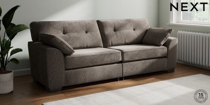 7.2.10 Stamford Buttoned Back 4 Seater Sofa Chunky Chenille Mink Brown Large Square Angle - Gunmetal | Made Click here to use our website with more accessibility support, for example screen readers