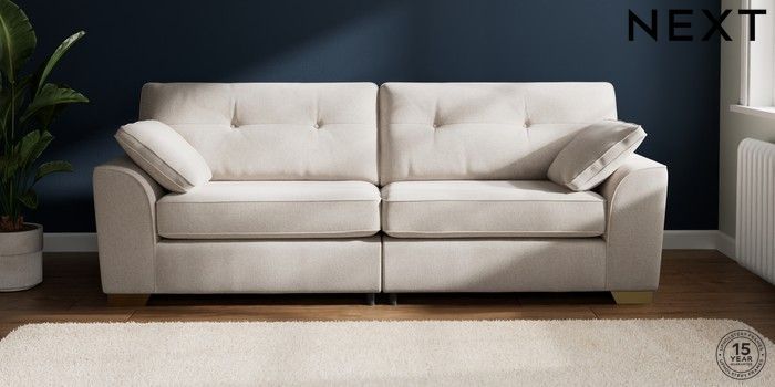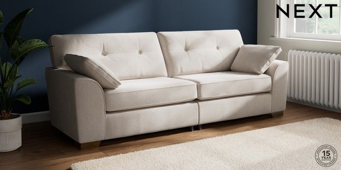 7.2.10 Stamford Buttoned Back 4 Seater Sofa Chunky Chenille Oyster Large Square Angle - Brushed Brass | Made Click here to use our website with more accessibility support, for example screen readers