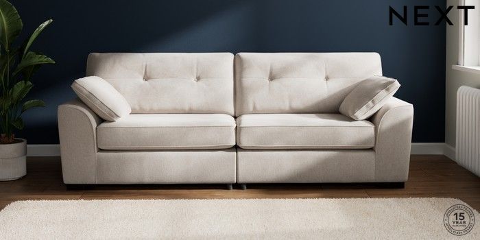 7.2.10 Stamford Buttoned Back 4 Seater Sofa Chunky Chenille Oyster Large Square Angle - Dark | Made Click here to use our website with more accessibility support, for example screen readers