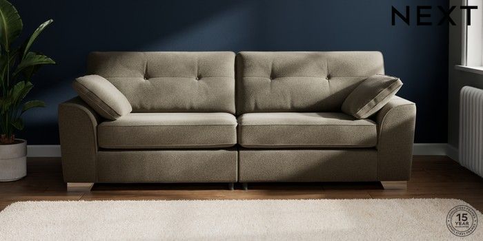 7.2.10 Stamford Buttoned Back 4 Seater Sofa Chunky Marl Light Olive Green Large Square Angle - Chrome Metal | Made Click here to use our website with more accessibility support, for example screen readers