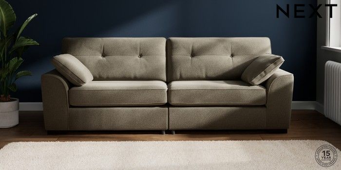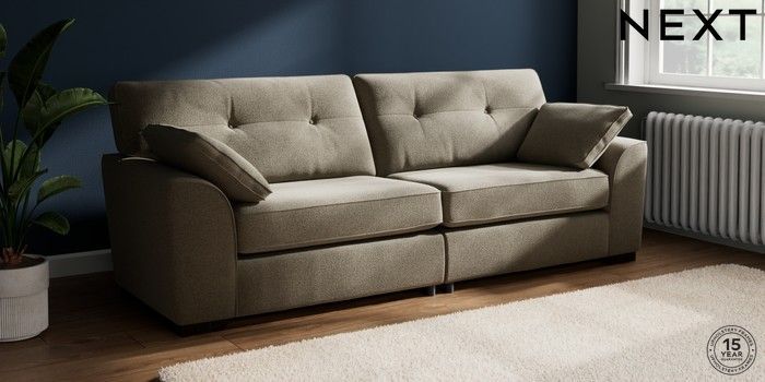 7.2.10 Stamford Buttoned Back 4 Seater Sofa Chunky Marl Light Olive Green Large Square Angle - Dark | Made Click here to use our website with more accessibility support, for example screen readers