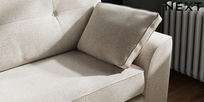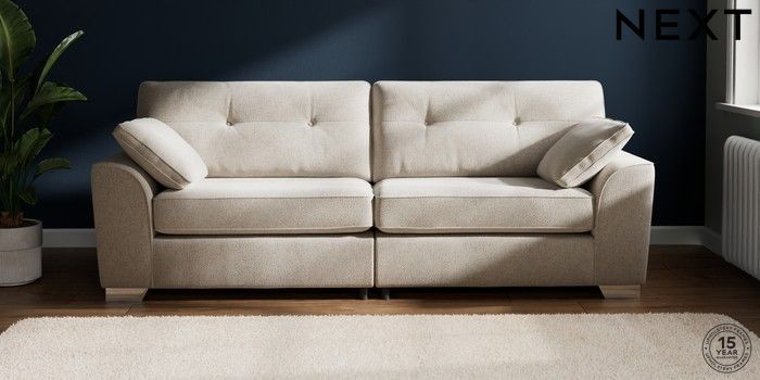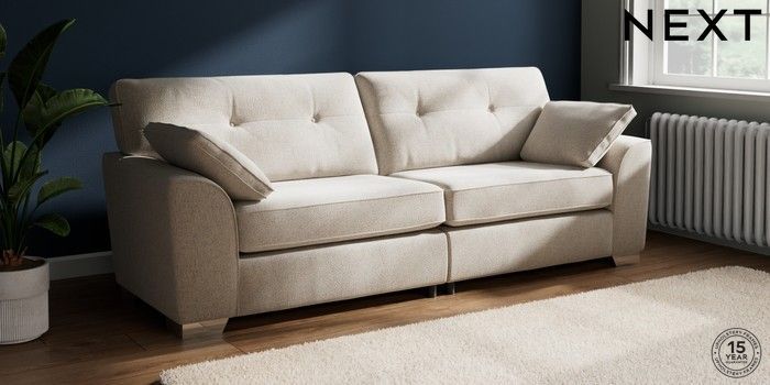 7.2.10 Stamford Buttoned Back 4 Seater Sofa Chunky Marl Oyster Large Square Angle - Chrome Metal | Made Click here to use our website with more accessibility support, for example screen readers